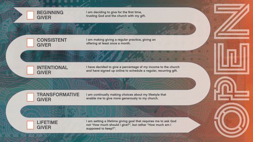 Spend some time reflecting on the Journey of Generosity Pathway. Where are you on your generosity journey? What would it take for you to move to the next step on the path?