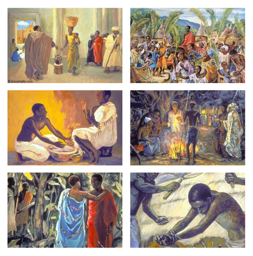 Vie de Jesus Mafa (Life of Jesus Mafa) was an initiative undertaken in the 1970s to help teach the gospel in Northern Cameroon. French Catholic missionary François Vidil worked with Mafa Christian communities in Cameroon to create an enormous catalogue of paintings depicting the life of Jesus as an African man. The plan was to build a resource that would help Mafa people to teach from the bible in a way that connects with their community.